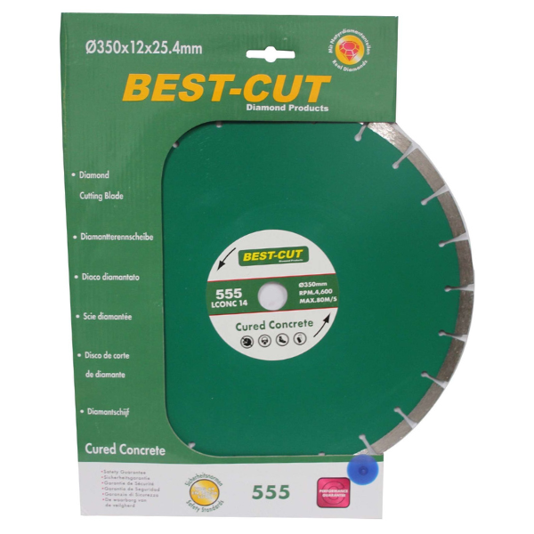 Best-Cut 555 Series laser welded, 12mm segment for long life, will cut cure concrete, reinforced concrete.
