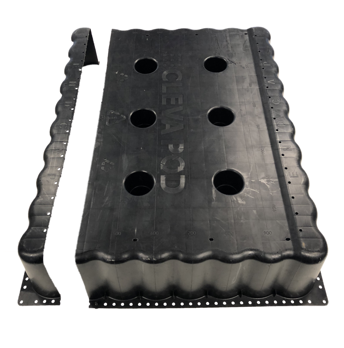 The unique CLEVA POD® END CAP is incorporated into the CLEVA POD® and can be cut off the main pod to close the void and prevents the ingress of concrete when a straight cut to shorten the pod is required.