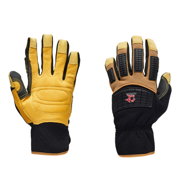 Spartacus Utility Glove Gold Leather is a Premium soft feel deerskin palm, with reinforced forefinger and thumb glove. Rolltop fingertips, rubber impact protection for knuckles and terry towelling sweat wipe.