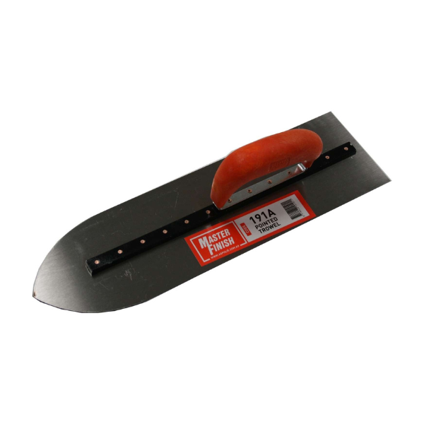 MasterFinish Pointed Trowel used for trowelling concrete floors or similar work. The curve of the blade end allows for the reduction of blade end marking.