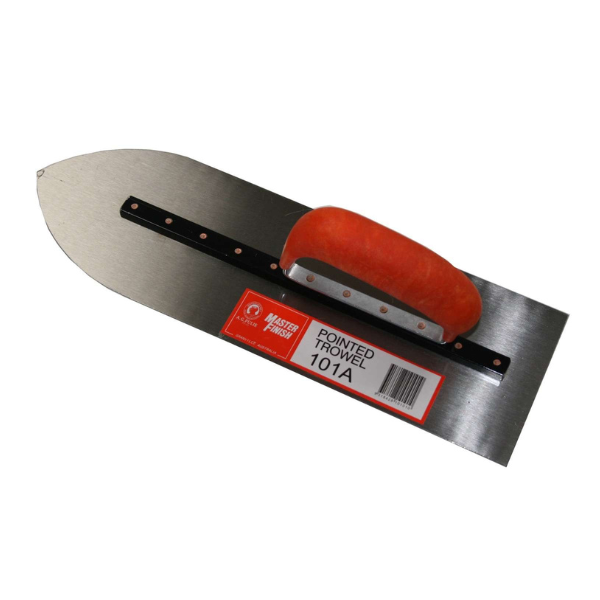 MasterFinish 120 x 365mm Concrete Pointed Trowel. Used for trowelling concrete floors or similar work, the curve of the blade end allows for the reduction of blade end marking and the moulded plastic handle is designed for ease of grip and operator comfort.